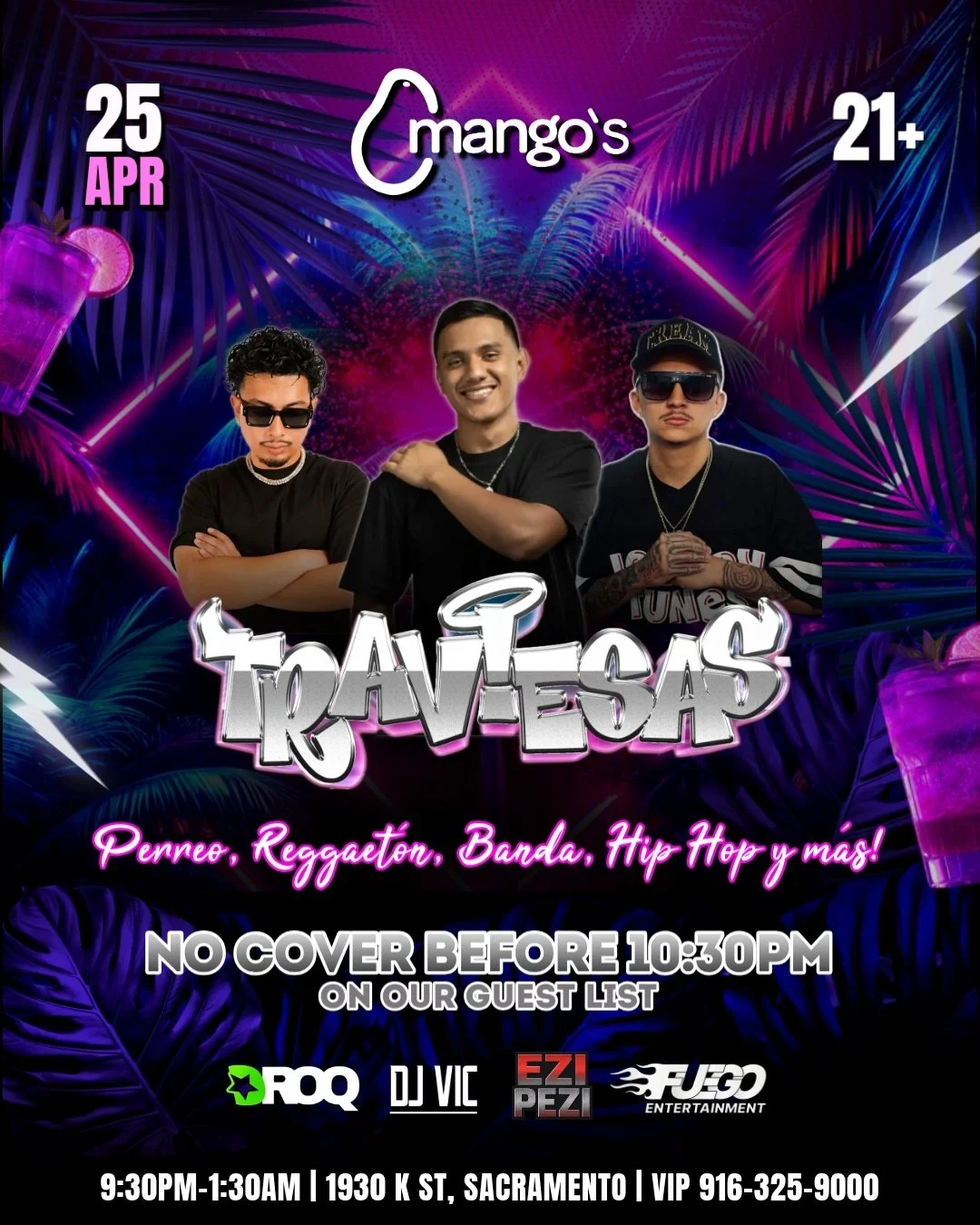 Traviesas Saturday’s are here! 3 DJ’s spinning the hottest Latin hits, Reggaeton, Live Banda and more.